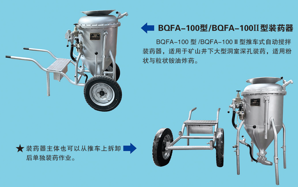 BQFA型自動(dòng)攪拌系列裝藥器,與人工攪拌相比,無需人工攪拌,節(jié)省人力且攪拌均勻,移動(dòng)方便,操作簡單便捷,大大降低人工勞動(dòng)強(qiáng)度,提高裝藥密度、爆破質(zhì)量,減少施工作業(yè)時(shí)間。先后出口塔吉克斯坦、老撾,秘魯,尼日利亞、法國等國家,使用情況反饋中得到一致好評并大力推薦。